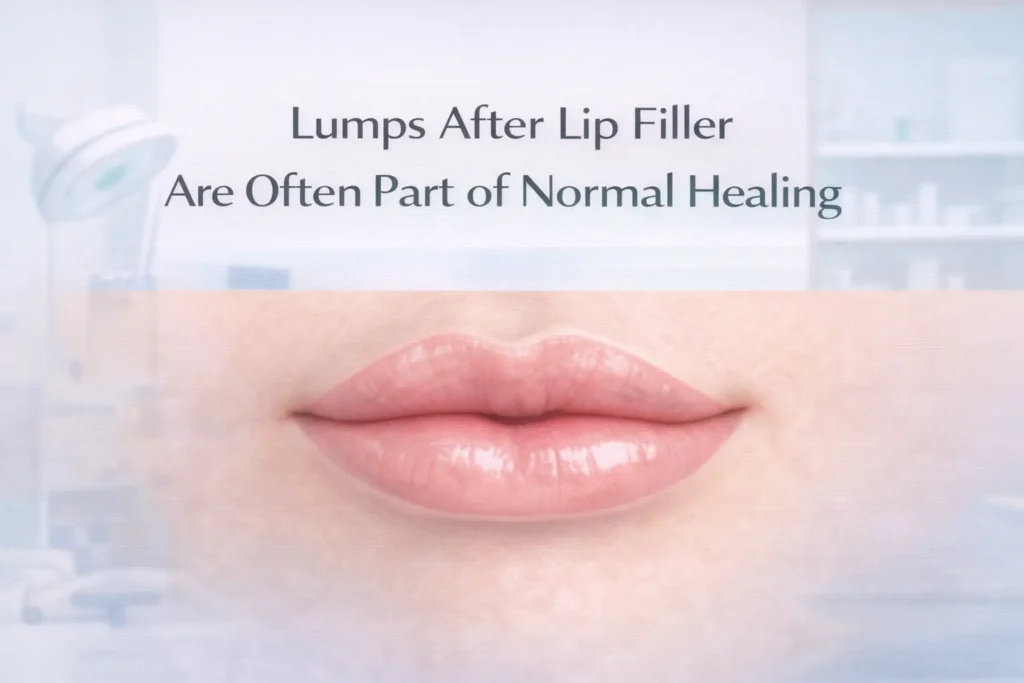 Most lumps after lip filler improve naturally as swelling settles and the product integrates with surrounding tissue. Soft or mild unevenness often resolves over several weeks without intervention. If lumps feel persistent, painful, or worsen rather than improve, seeking professional assessment helps ensure appropriate care and reassurance.